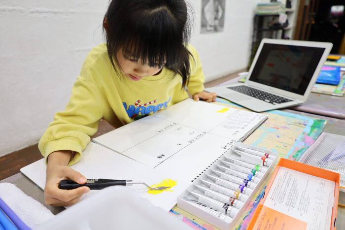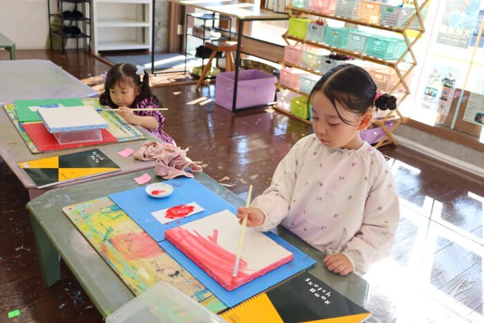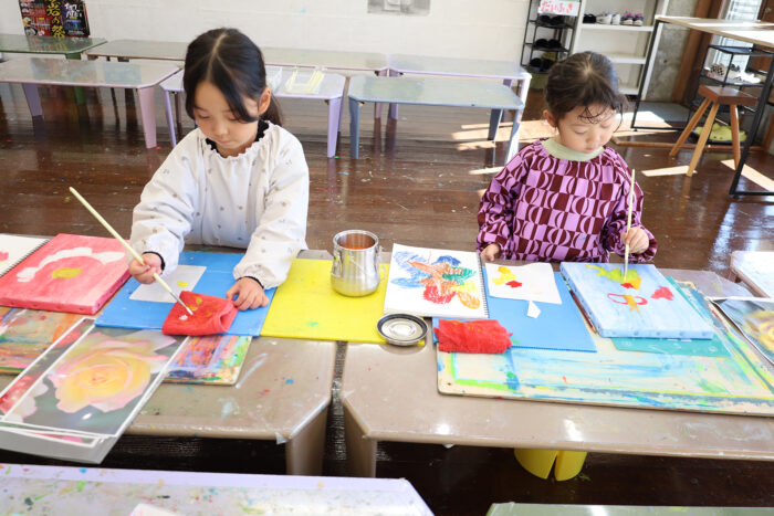 絵画幼児クラスさんは油絵レッスンがスタートしています