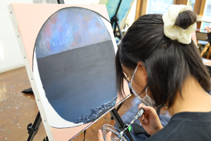 アクリル絵の具の基礎をマンツーマンで学んでいます
