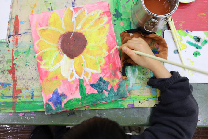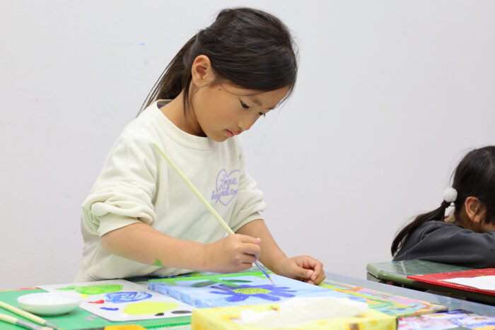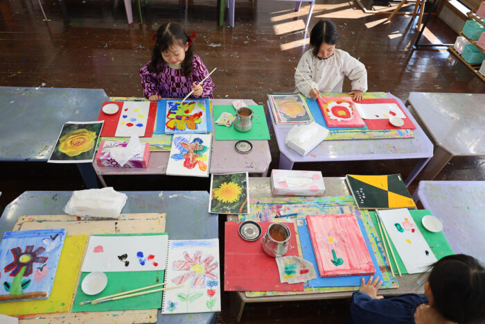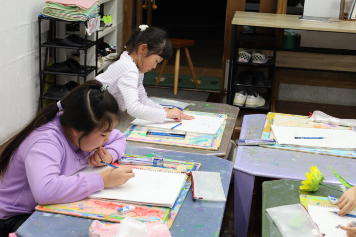 こちらは絵画幼児クラスさんの油絵作品の途中経過です