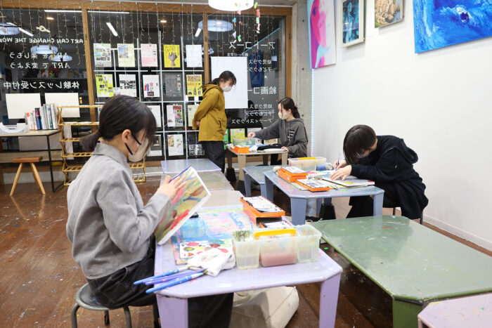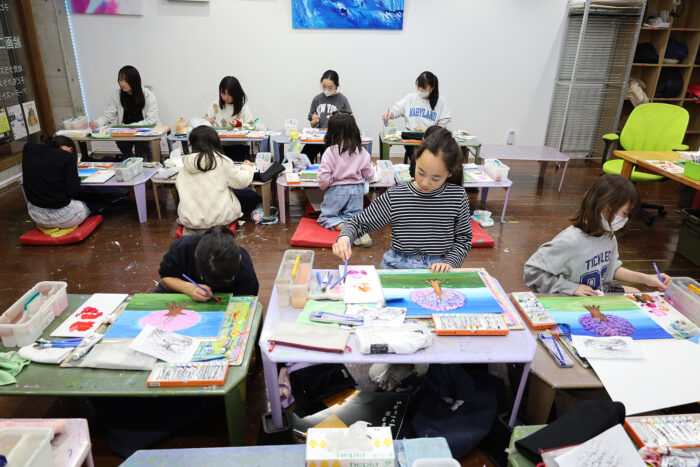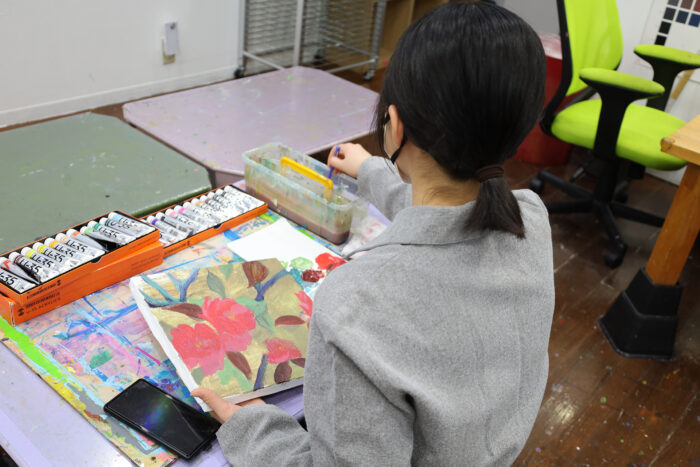 構図の基礎やアクリル絵の具の特性を学びながら、春に向けて桜を描いています!